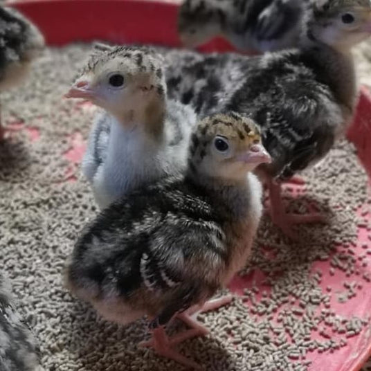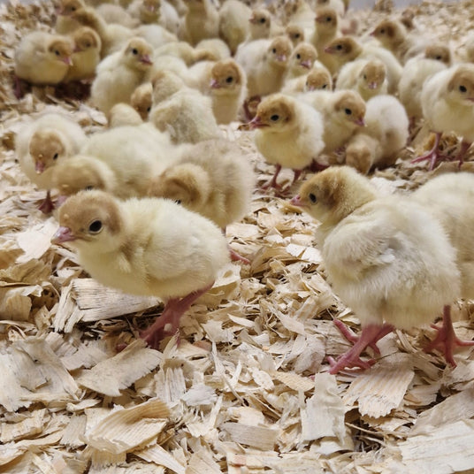 At two weeks old, our poults are ready for more space and so are allowed to roam our heated barns freely. The poults are now much more active (and very quick!) with longer legs to run around in the barns. They are fed a natural diet full of protein and vitamins without growth inhibitors.